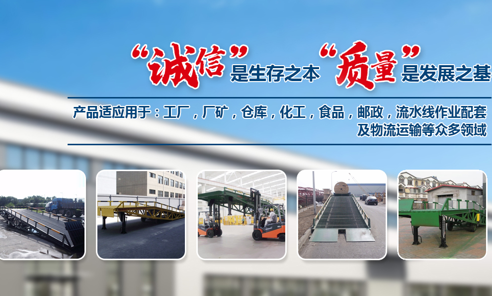 隨著國內(nèi)及國際市場需求的不斷擴大,公司也在不斷引進國內(nèi)外的先進技術(shù)來充實自身。公司先后設(shè)計研發(fā)出了,大小型貨車配裝的:汽車液壓尾板,叉車裝卸貨用的:移動式登車橋;庫房外貨臺配裝的:固定式液壓升降平臺(貨臺高度液壓調(diào)節(jié)板);庫房內(nèi)外高層輸送貨物:導(dǎo)軌式升降貨梯,液壓升降平臺,旋轉(zhuǎn)液壓升降臺,及百噸位大型升降臺,等多種的先進裝卸裝備,適應(yīng)用于:工廠,廠礦,倉庫,化工,食品,郵政,流水線作業(yè)配套及物流運輸?shù)缺姸囝I(lǐng)域。